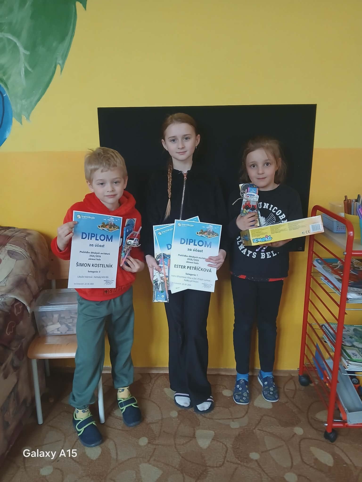 - Mína, Šimon Kostelník, Ester Petříčková a Šárka Vrobelová se poctivě připravují na Okresní kolo dětských recitátorů ve Svitavách. Držíme pěsti!