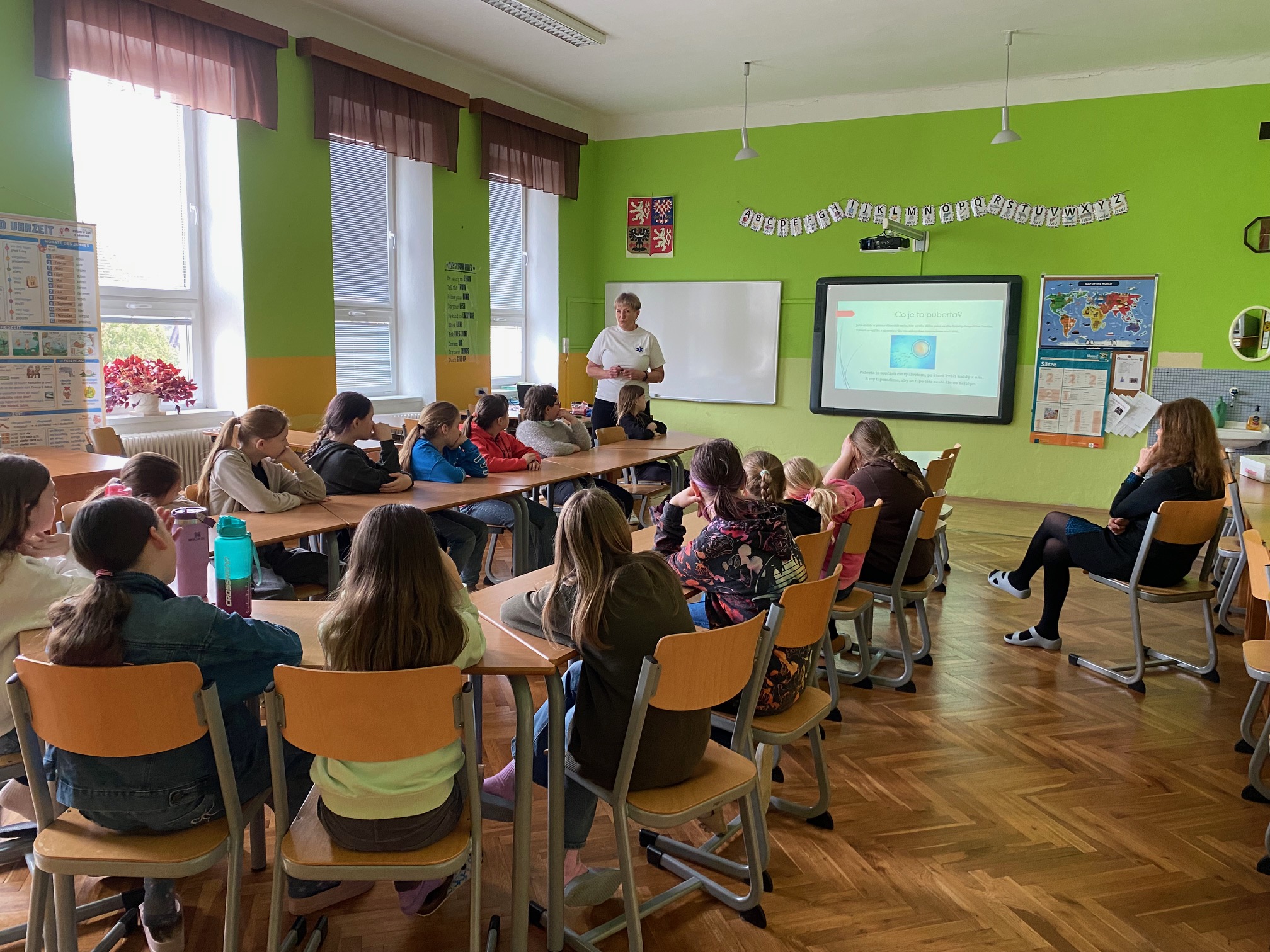 Dne 16.4. 2026 se v naší ZŠ konala pod vedením zdravotní sestry Ivany Kantůrkové přednáška o dospívání, které se zúčastnila děvčata 4. a 5. ročníku.