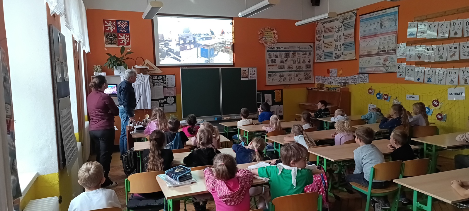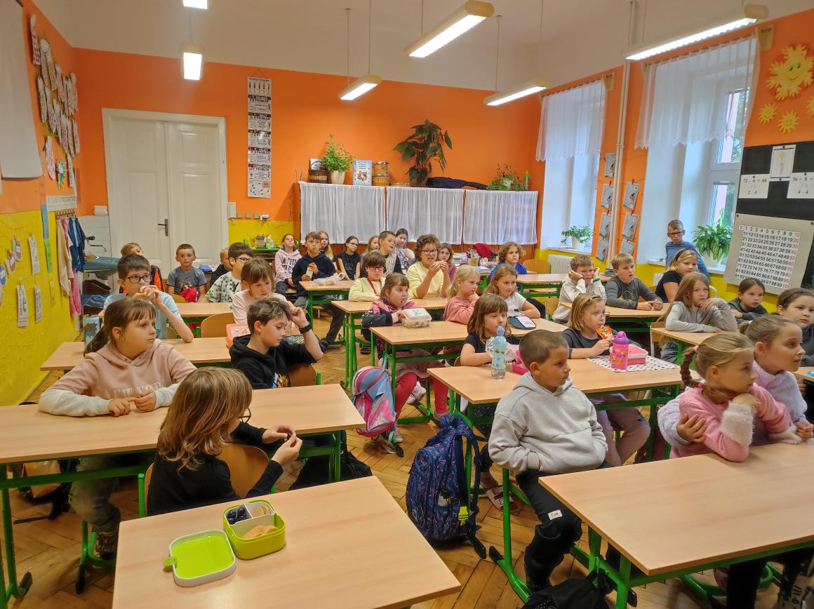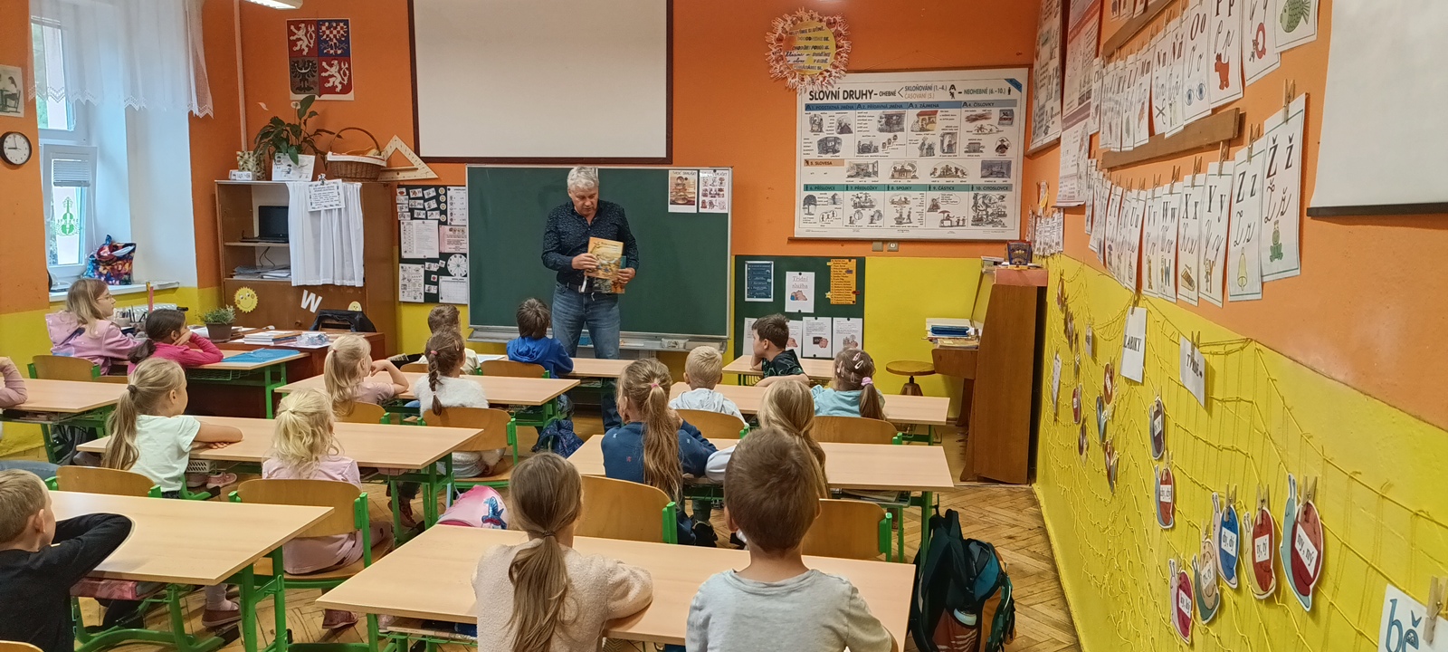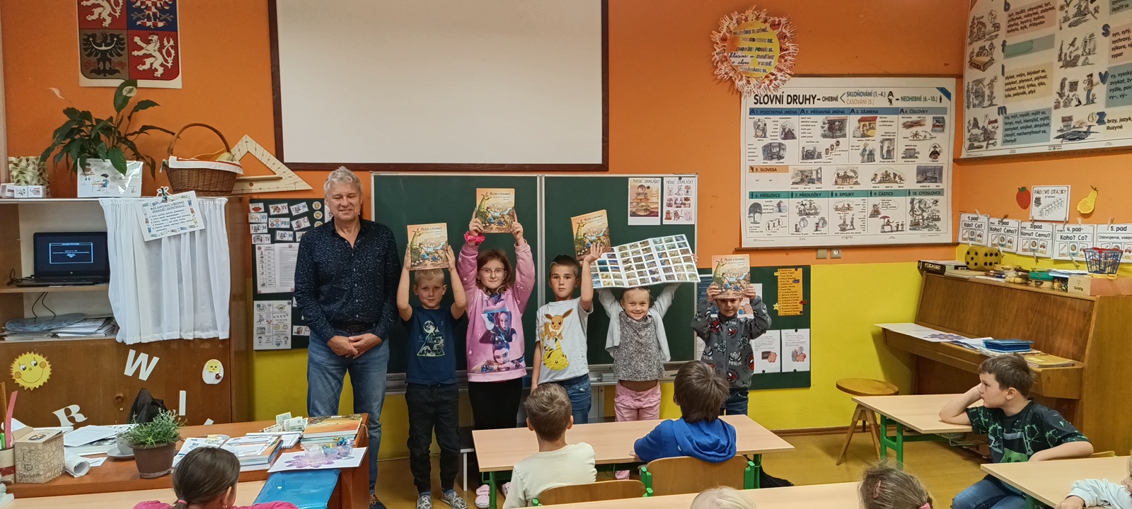 V pátek 26. září 2025 se v naší škole uskutečnila pro žáky 1. stupně beseda s autorským čtením se spisovatelem Josefem Benešem – autorem dětské knihy Meďan a Koumen na zatopené planetě.