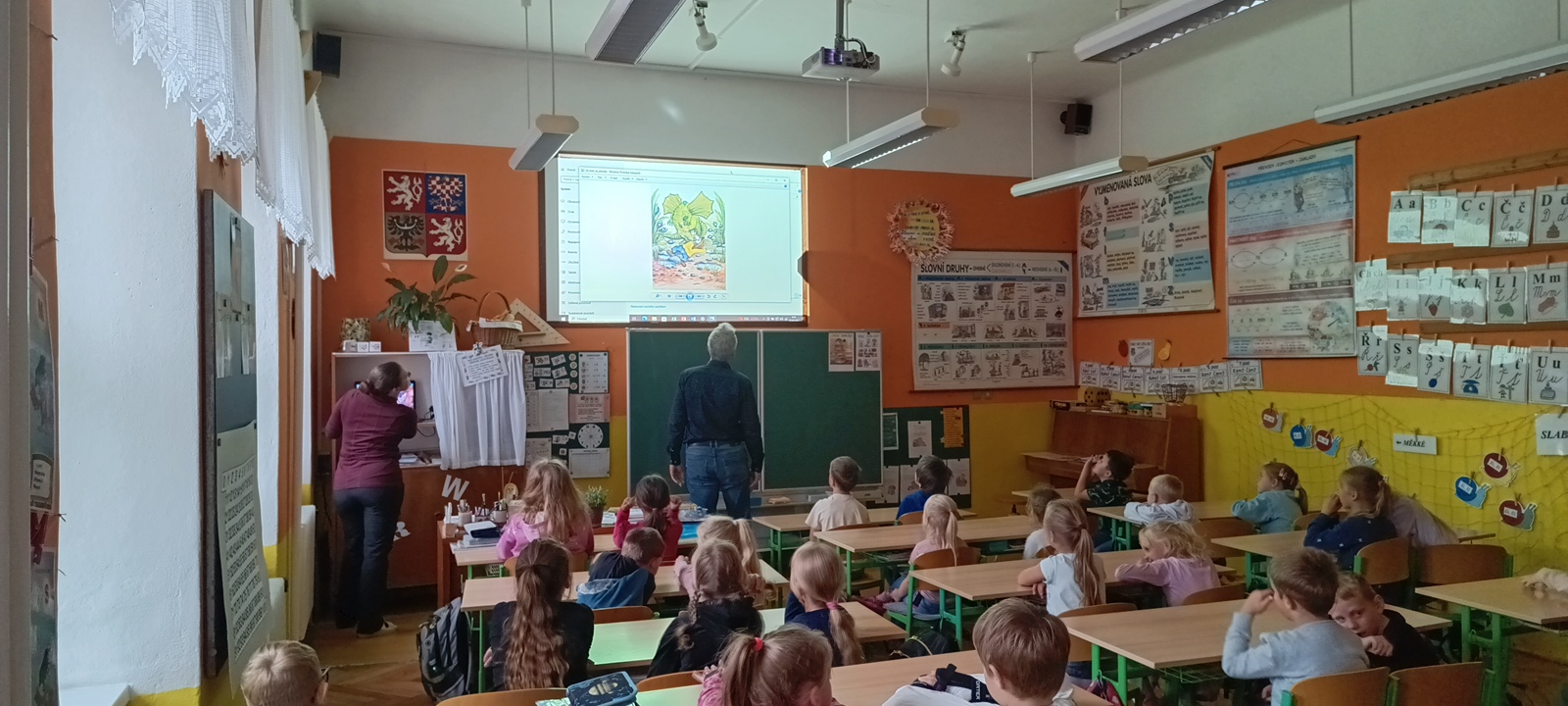 Děti zhlédly i krátké video o tom, jak se tvoří ilustrace – od čistého papíru po finální kresbu.